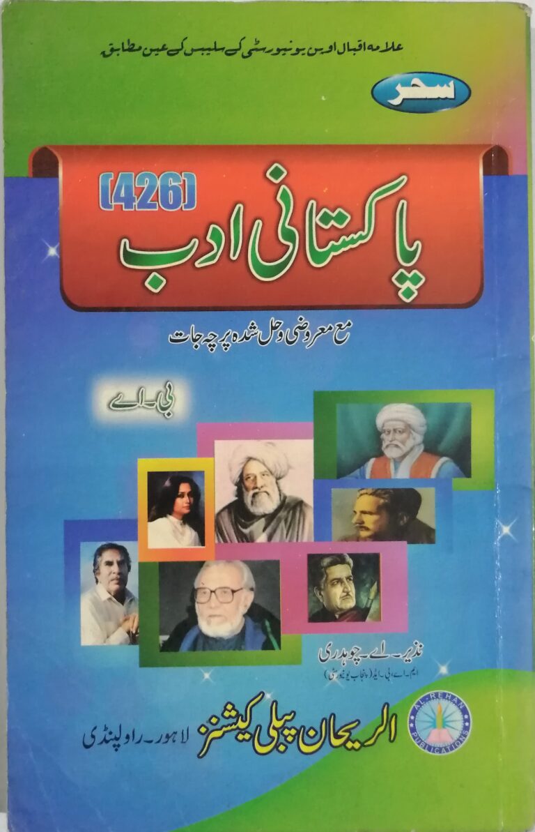 This AIOU Key Book for Pakistani Adab – II Code 426 (Urdu Medium) is a complete study solution for students of Allama Iqbal Open University. It includes solved assignments, past papers, important questions with answers, and simple explanations to support exam preparation. Written in clear Urdu, this key book makes it easier for students to understand and study Pakistani Literature (Adab). Specially designed for AIOU Code 426, it ensures effective learning and exam success. A must-have guide for Urdu medium students, available online at the best price.